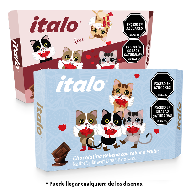 Chocolatina de leche rellena de frutas con empaques coloridos de animalitos.