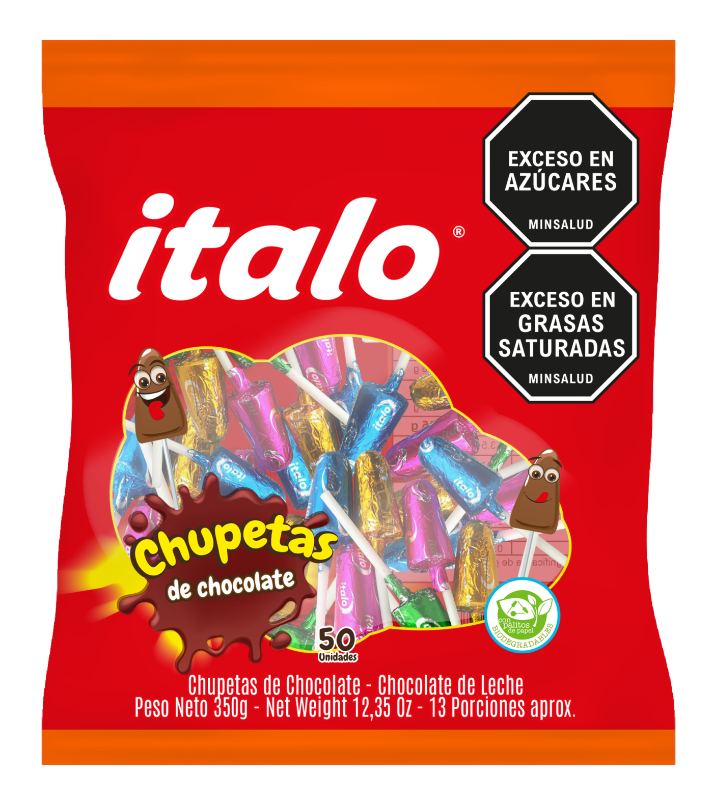 Chupetas de chocolate con el más rico sabor, tradicional de Comestibles Italo.