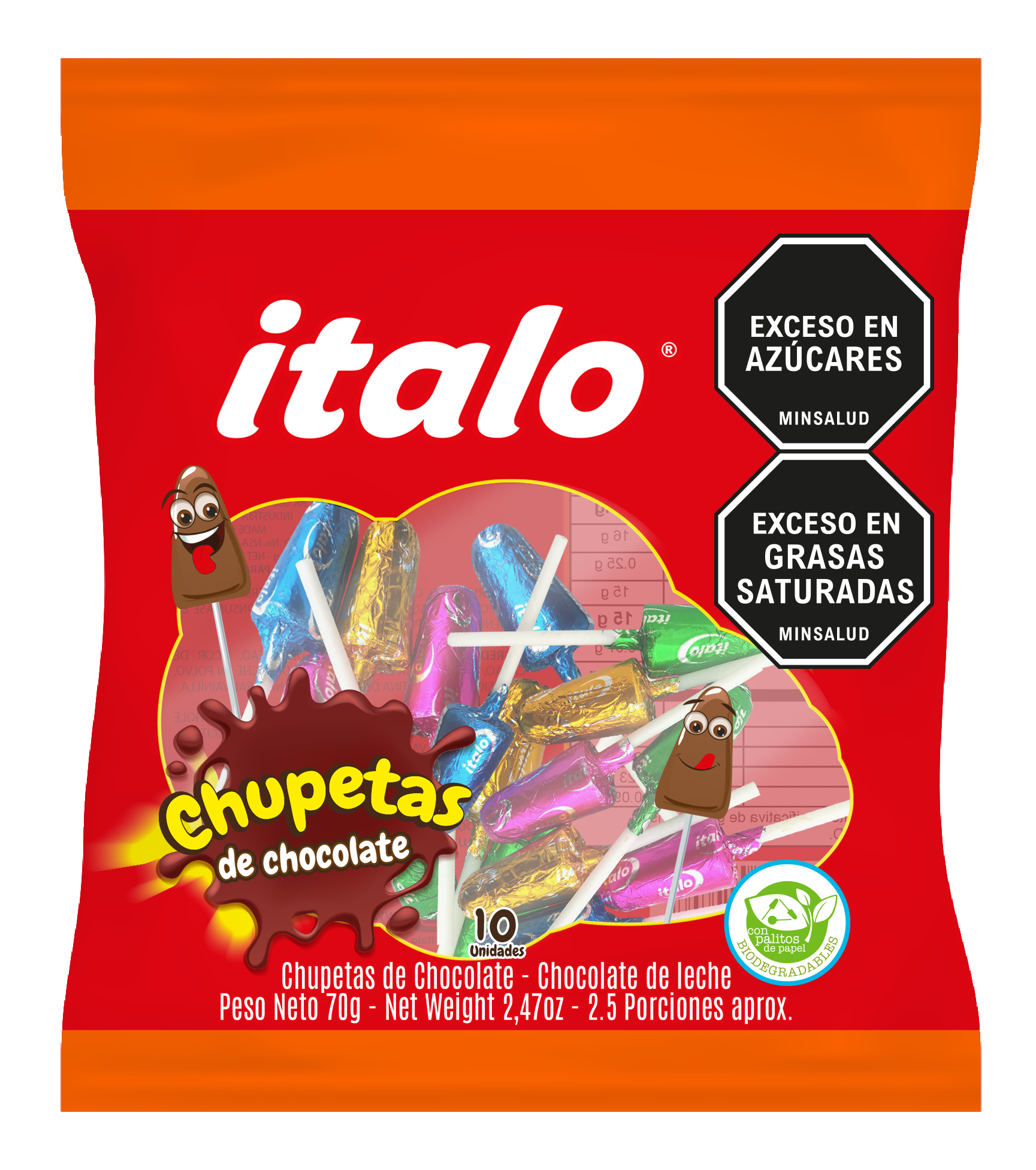 Chupetas de chocolate con el más rico sabor, tradicional de Comestibles Italo.